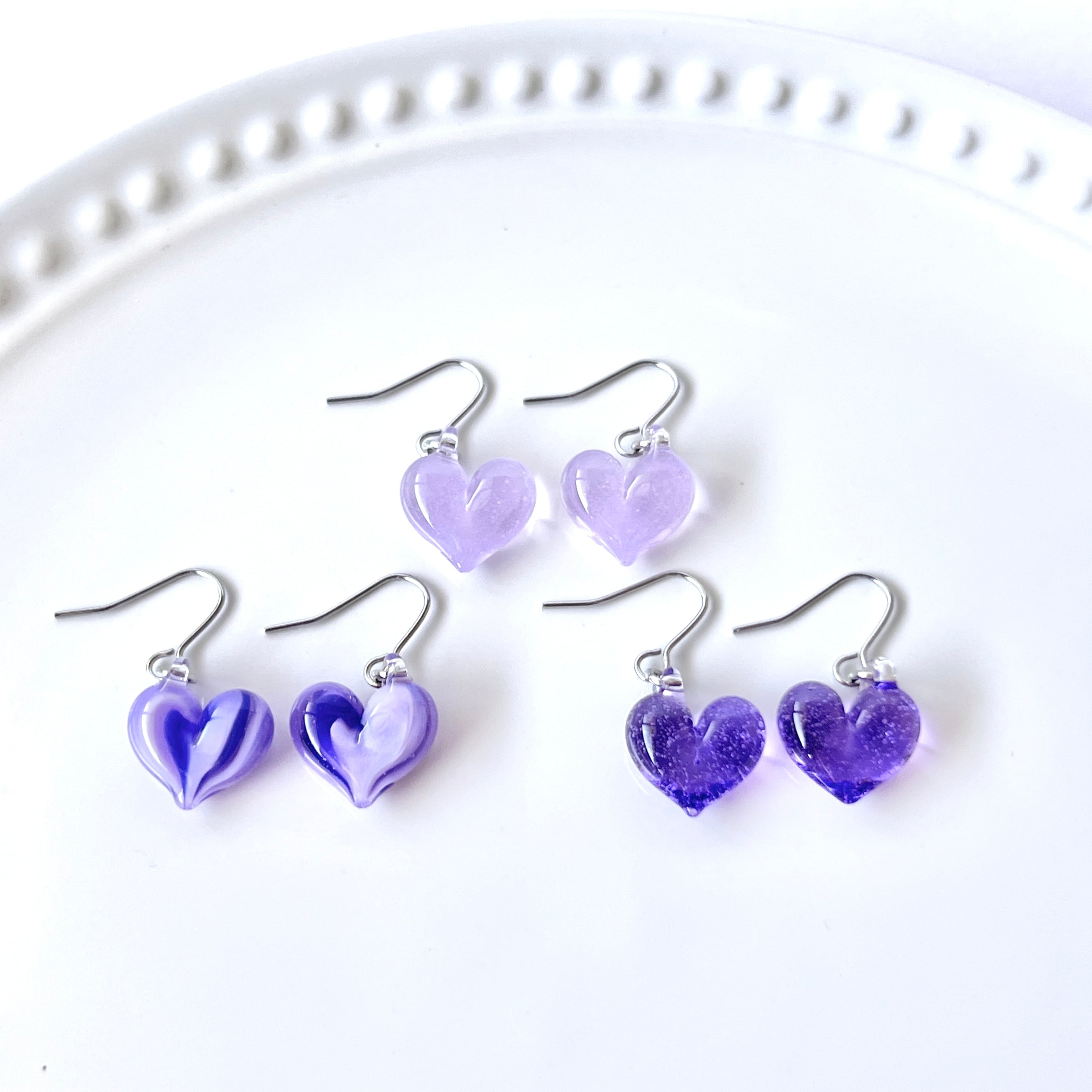 ガラスのハートピアス(ライラック、マーブル、クリアパープル)