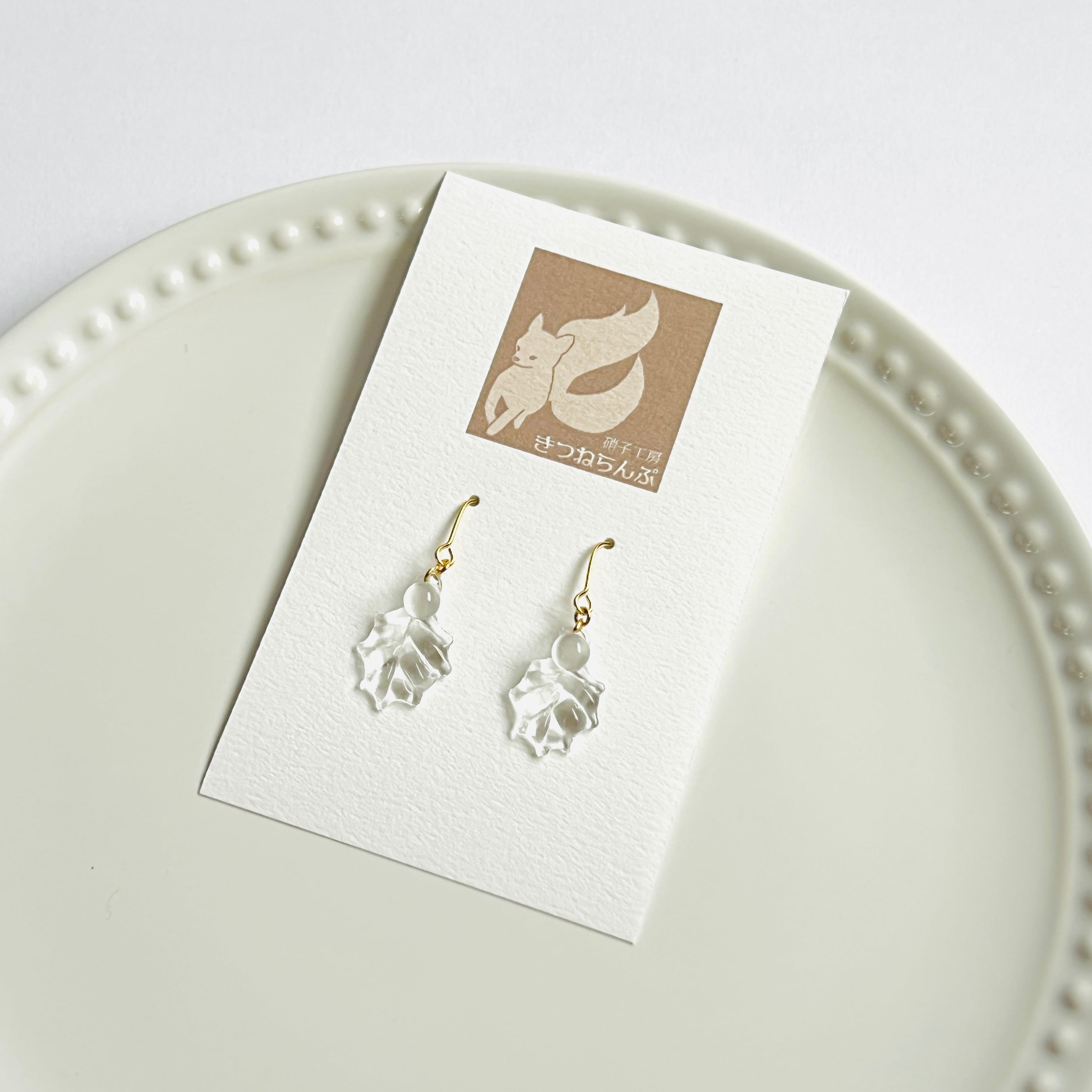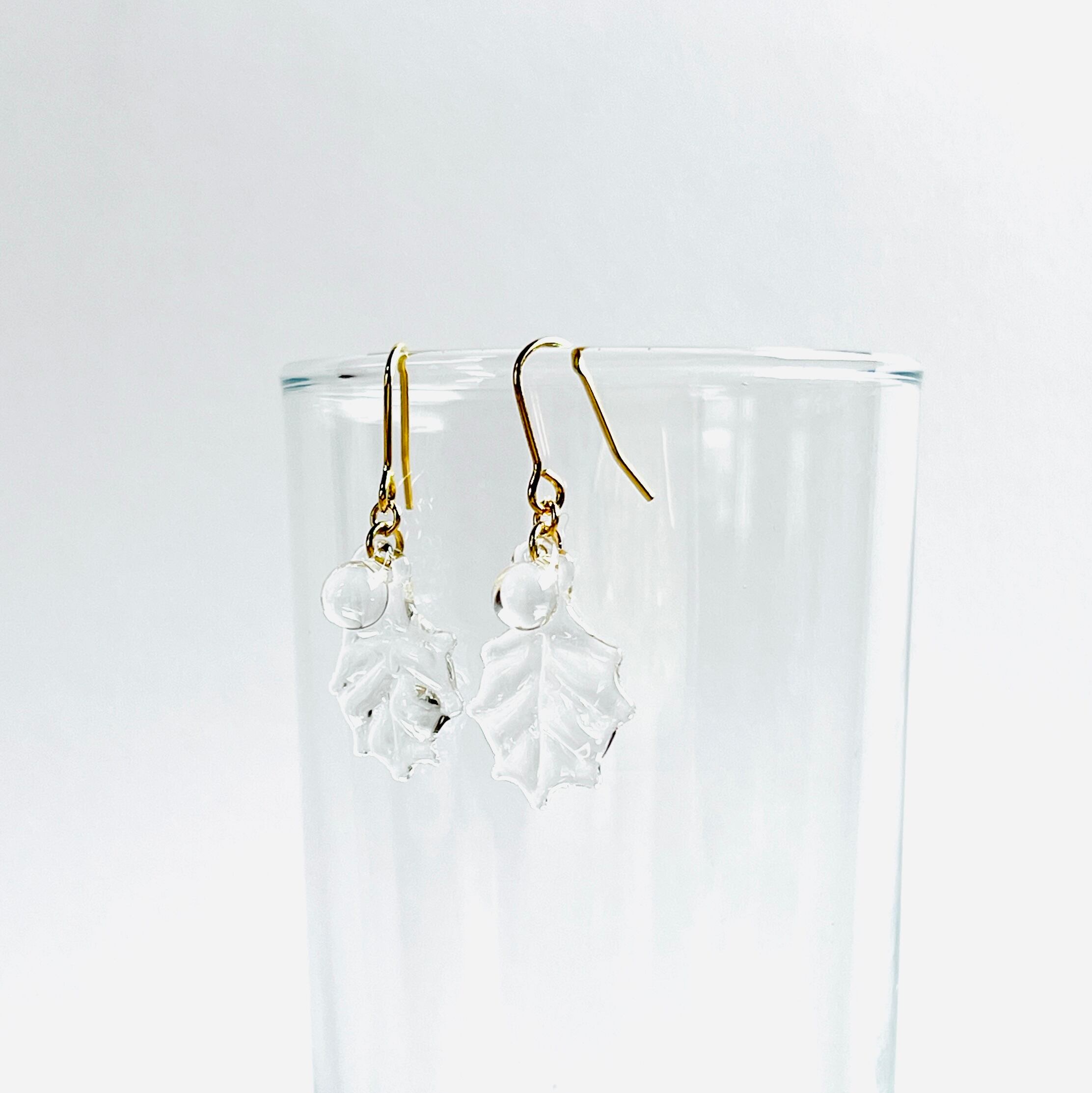 ヒイラギをモチーフにしたクリスマスにぴったりなガラスピアスです。