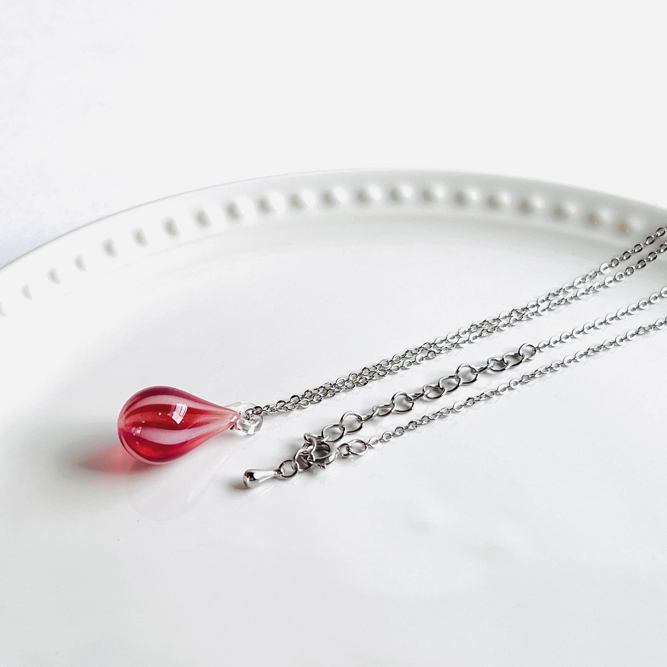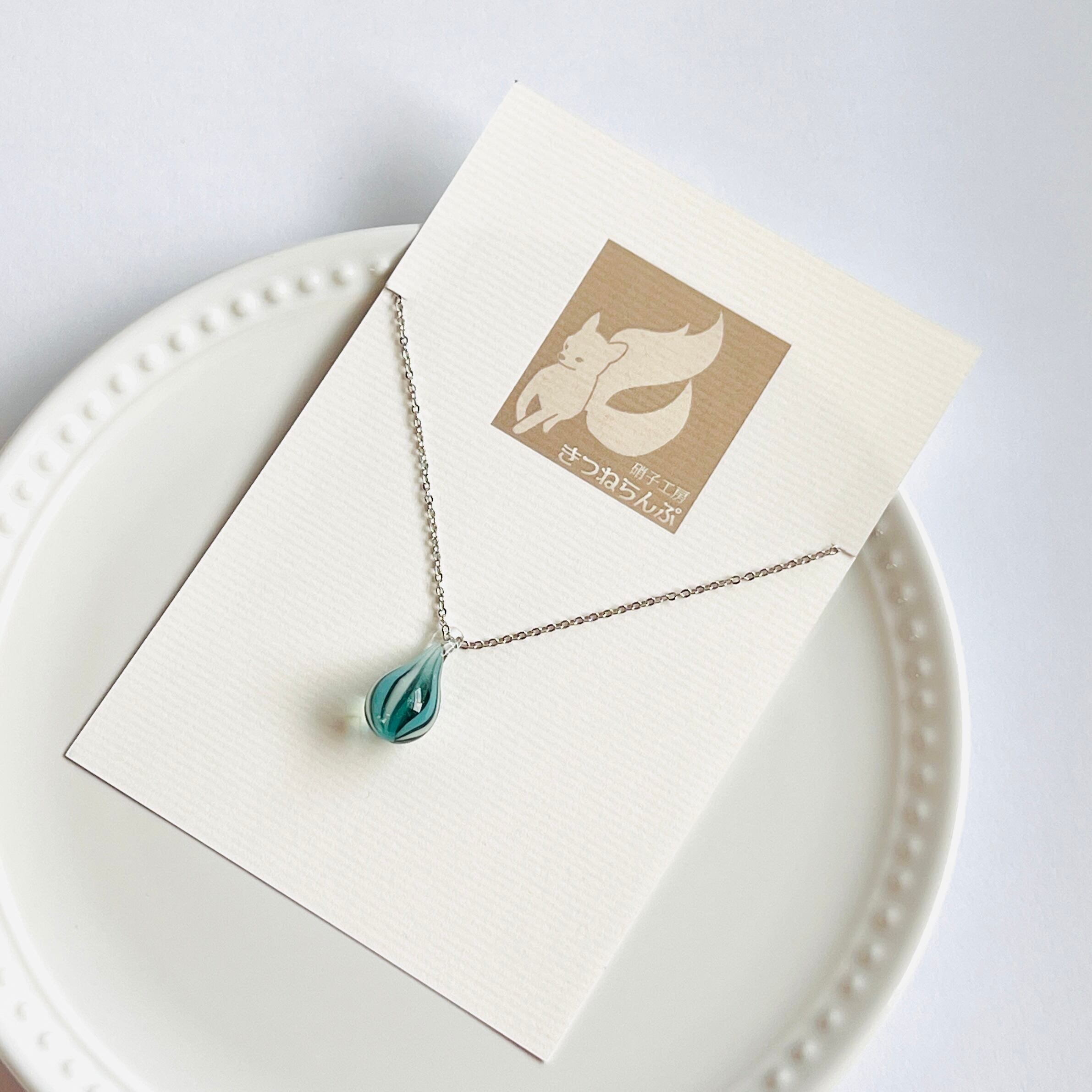 レトロなステンドグラスに似た趣のガラスの雫ペンダントです。