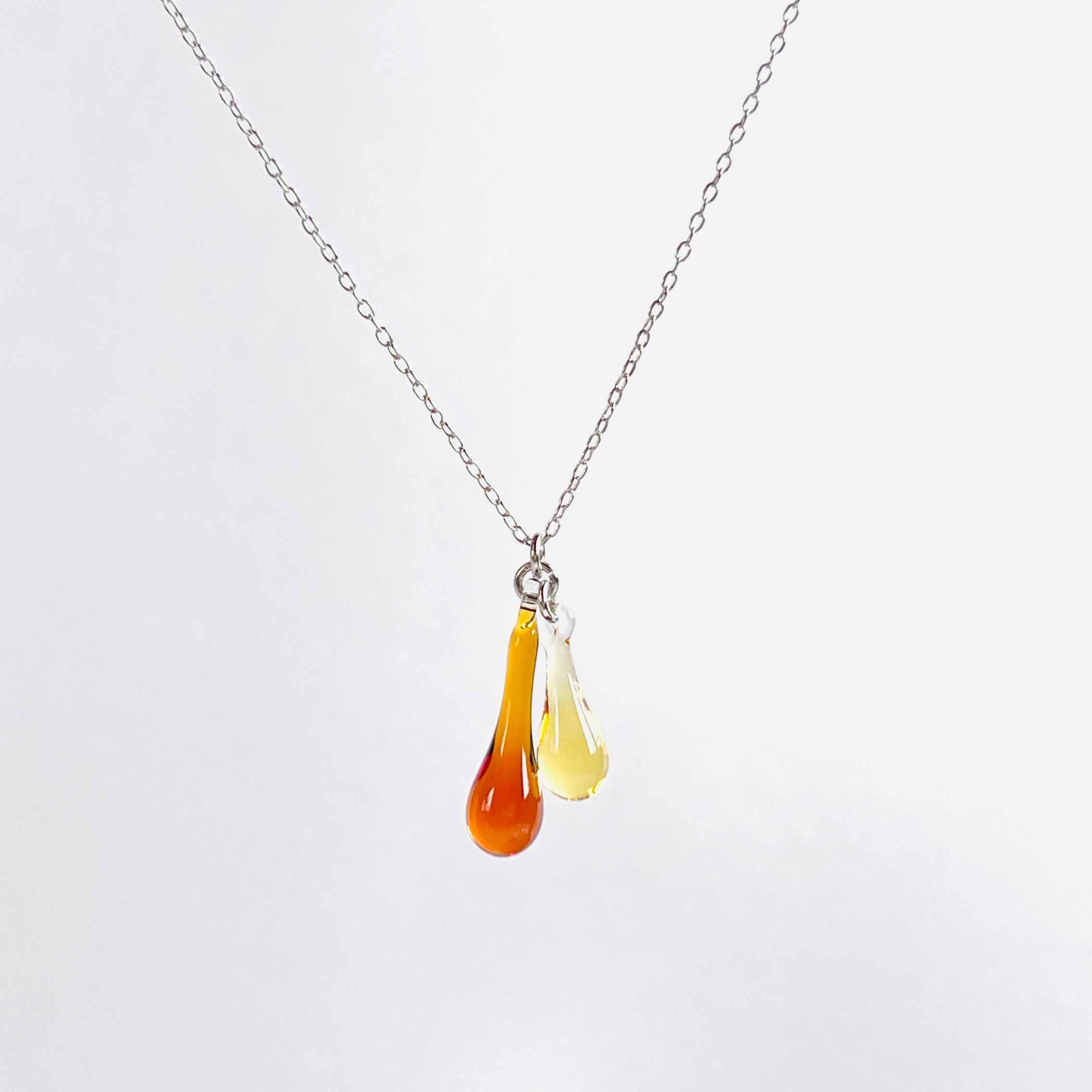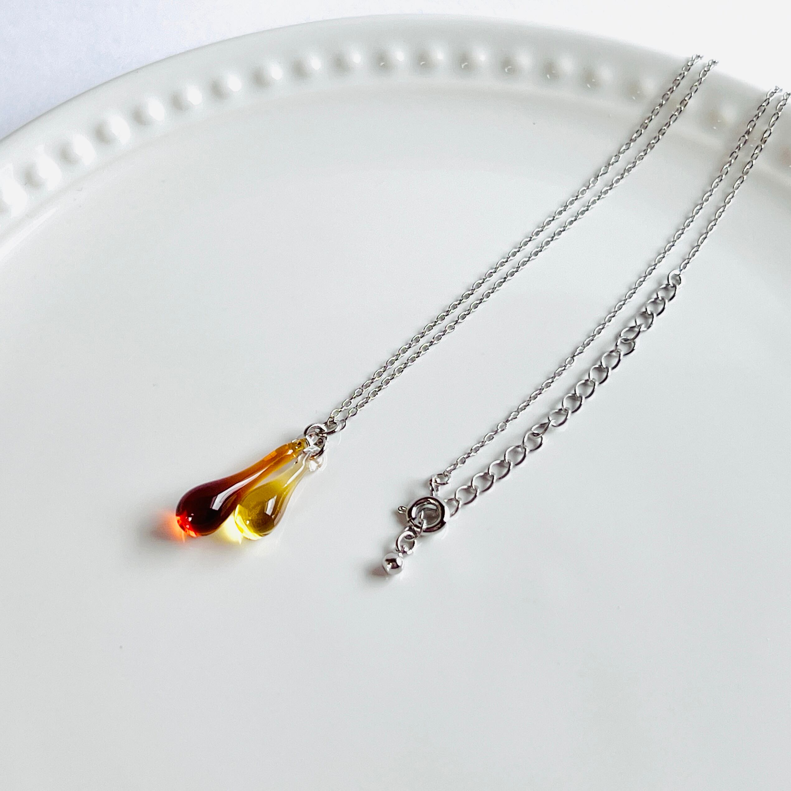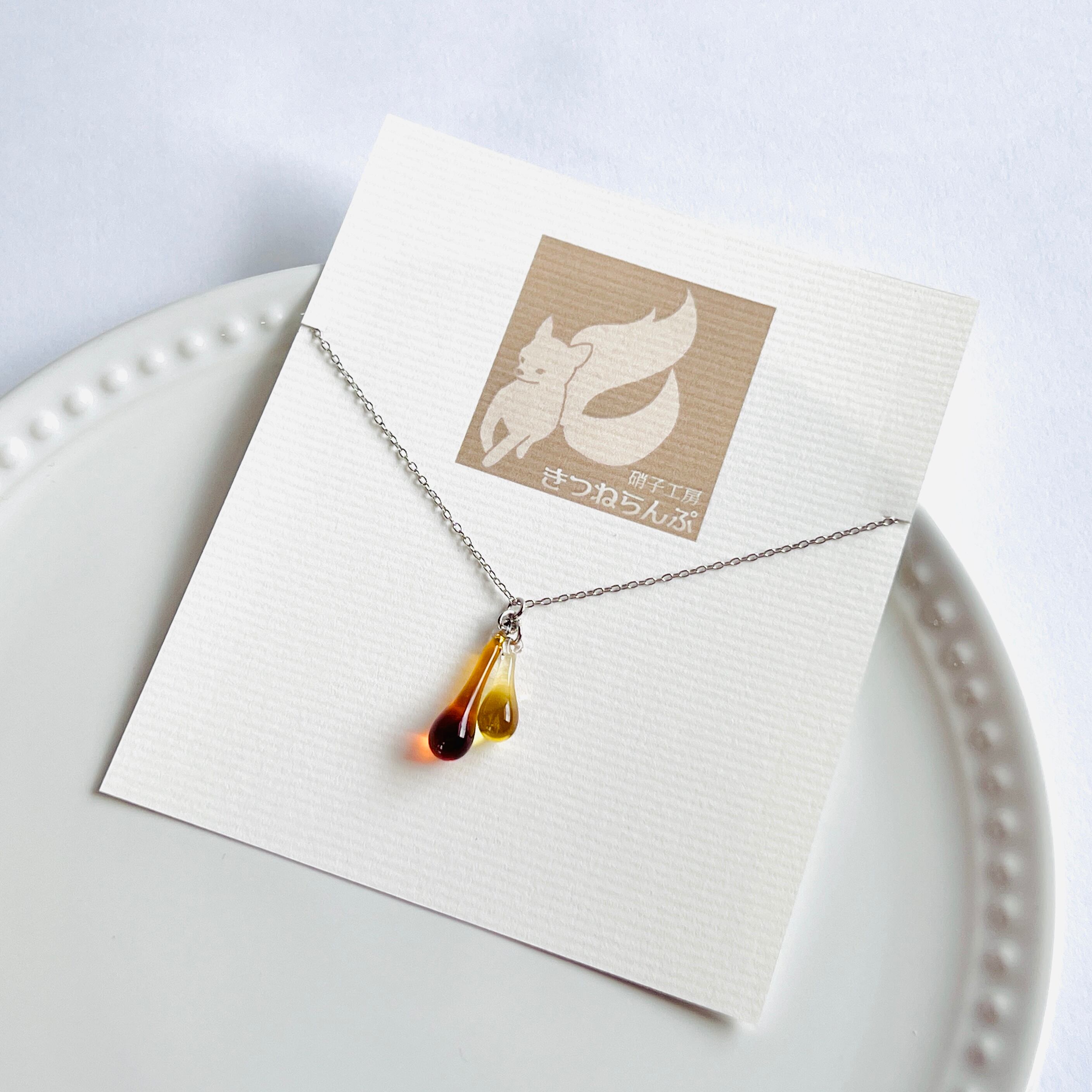 二雫の硝子ネックレス(べっこう色×琥珀色)