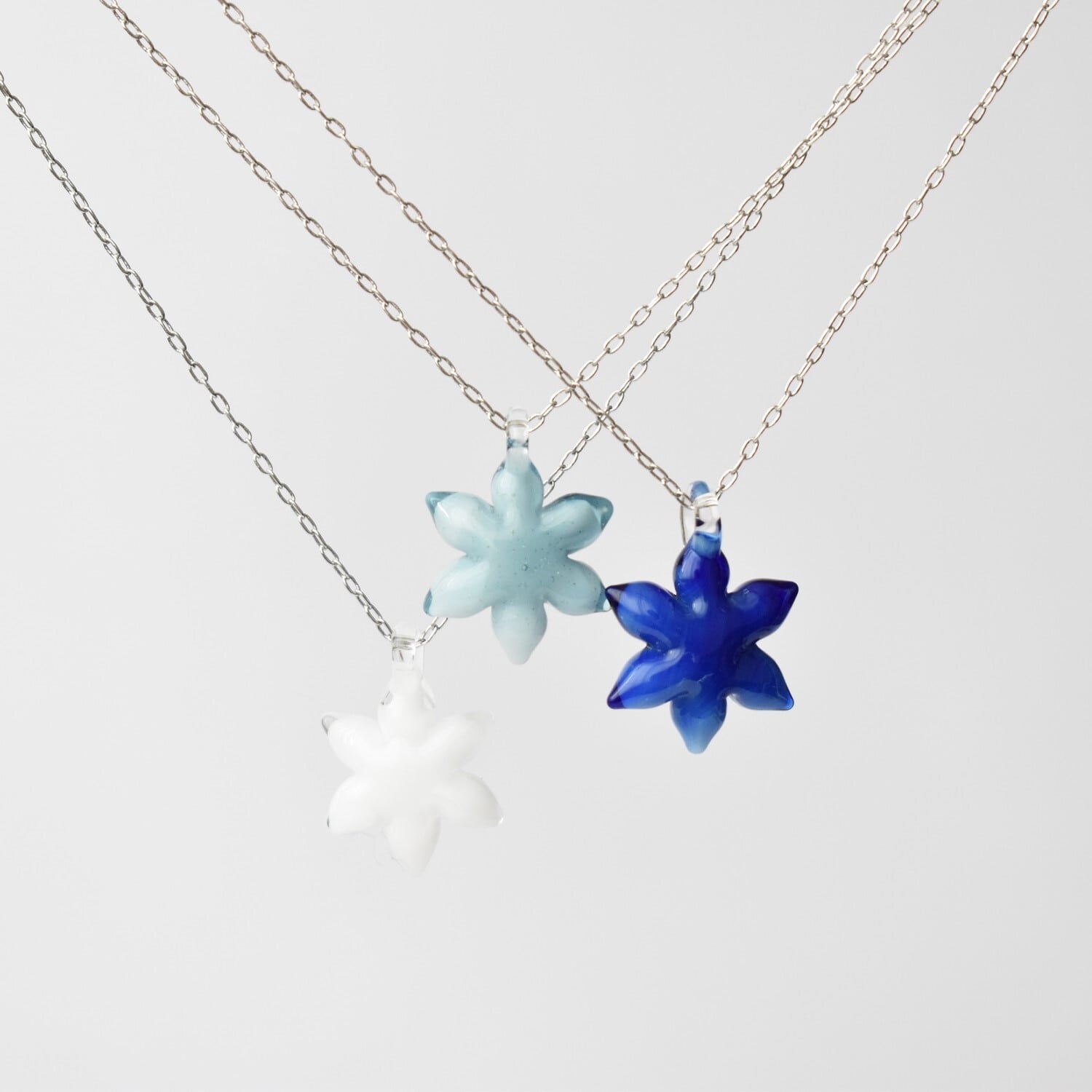 雪の結晶のガラスネックレス