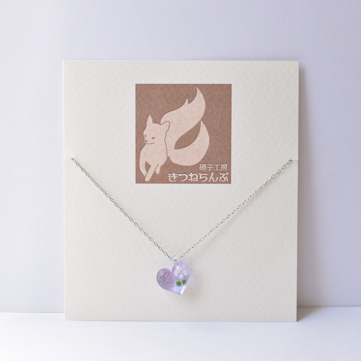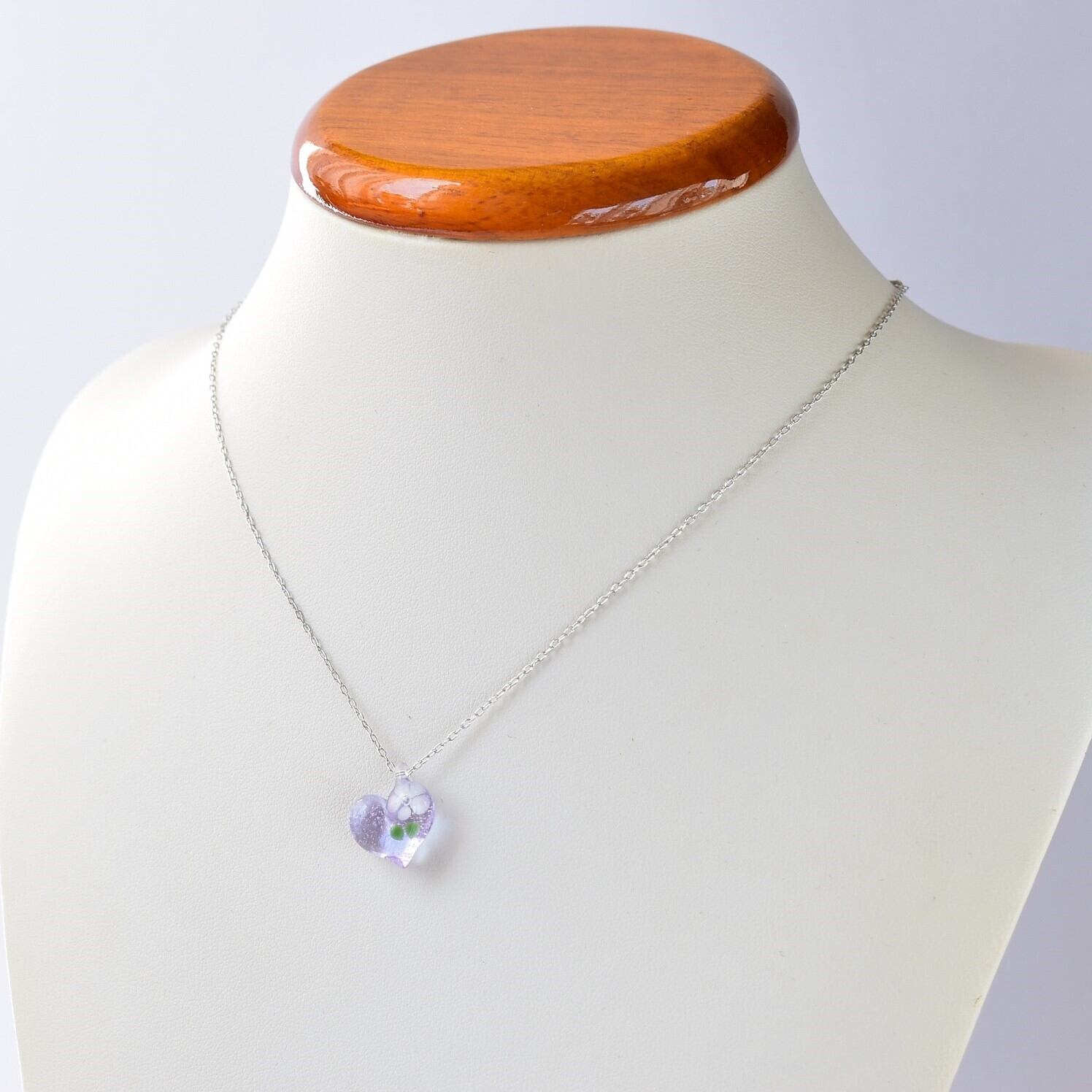 白い花のガラスのハートネックレス(ネオジウム)